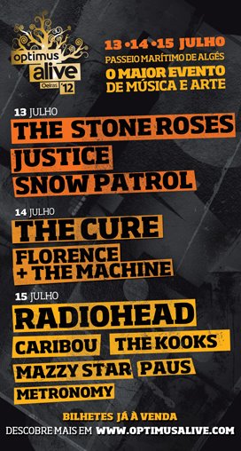Desde que el Optimus Alive confirmara a los Stone Roses y a Radiohead (grupos exclusivos en España del FIB y del BBK respectivamente), se agenciase a The Cure, y fuese desvelando nombres tan jugosos como Florence + The Machine, Justice, Metronomy o Mazzy Star, muchos españoles han comenzado a verlo con buenos ojos.