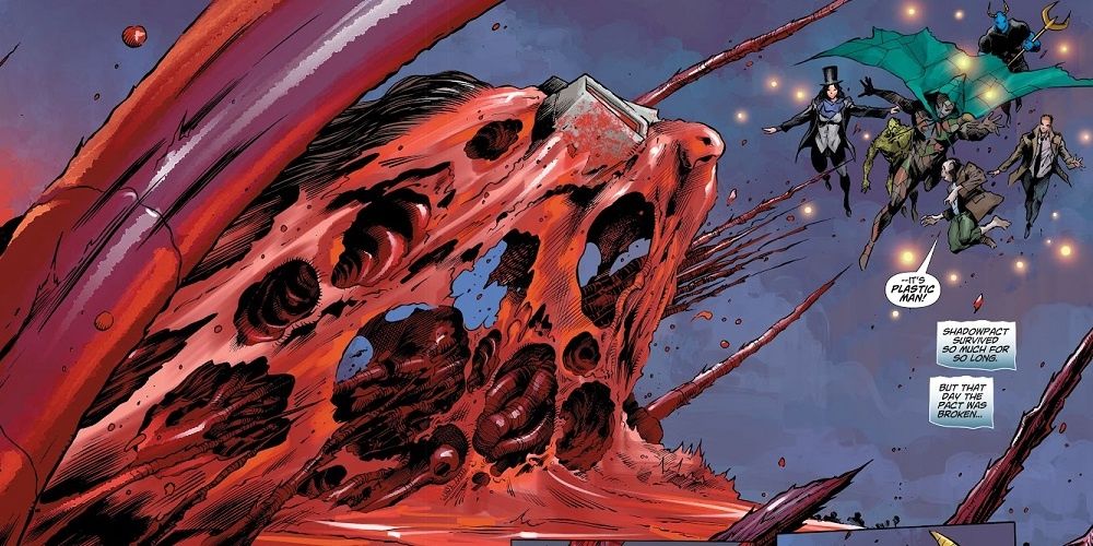 En la secuela de la serie original, un Pacto de Sombra de facto liderado por John Constantine se dirige a Australia, el país natal de Tom Taylor, para investigar un disturbio en la Cosa del Pantano. Al llegar a su destino, la variopinta tripulación encuentra una fortaleza rodeada por un foso de sangre. Sin embargo, cuando el grupo cruza este "foso de sangre" se dan cuenta rápidamente de que es el fallecido Hombre de Plástico el que ataca y empala al Diablo Azul por la boca, deslizándose a través de su impenetrable piel.
