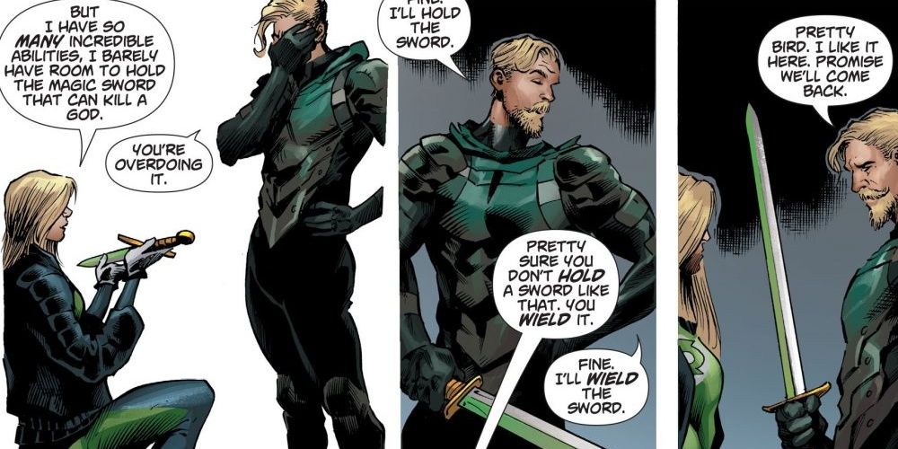 Después de que Oliver Queen protestó contra los héroes de Nueva Metrópolis que regresaban a la Tierra en busca de una cura para el virus, su destino estaba escrito en piedra: iba a morir en ese viaje. Por supuesto, en el momento del viaje, la nave que llevó al equipo de vuelta a la Tierra fue destruida en un rayo de luz y Flecha Verde estaba en las garras de la guerrera amazónica no muerta, la Mujer Maravilla. Ella rápidamente se deshizo de él y Oliver Queen se perdió. Sin embargo, mientras la historia continúa, Dinah mantiene la esperanza, contra todo pronóstico, de que la supuesta cura pueda ser encontrada, y que su marido pueda ser devuelto a ella.