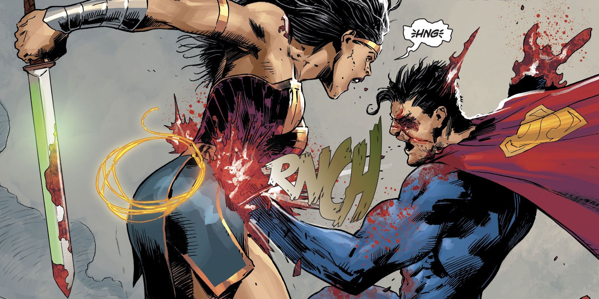 En un último esfuerzo por evitar que el infectado Hombre de Acero acabara con esos transbordadores, Diana tomó una espada forjada con kriptonita y fue a la batalla con Superman. Sin embargo, no sirvió de nada, y aunque fue capaz de cortar el brazo de Superman y empalarlo con la hoja de kriptonita, no fue suficiente y despachó la última esperanza de la Tierra con un solo golpe.