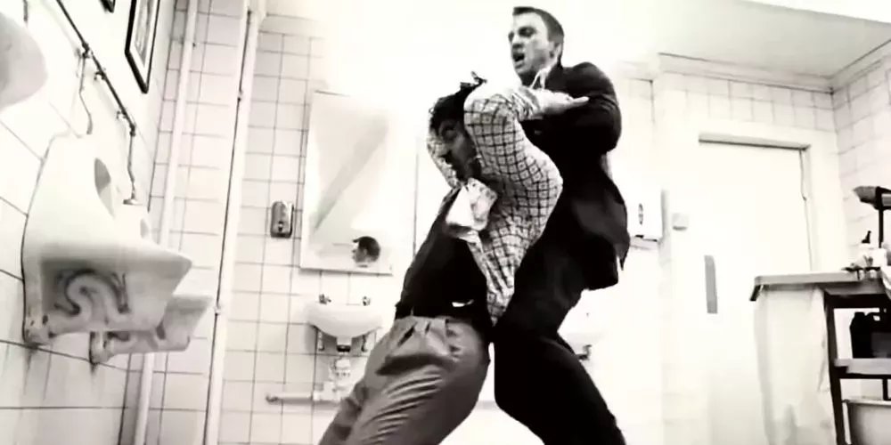 Para demostrar que la franquicia ha dado un paso atrás y ha adoptado un enfoque más realista, la pelea de Bond con Fisher es visceral y sangrienta. Rodada en un blanco y negro granulado, los dos no se dedican a movimientos teatrales ni a elegantes burlas, sino que se golpean mutuamente de forma utilitaria pero apasionante.
