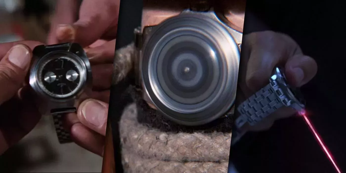 En Nunca digas nunca jamás , de 1983, Bond llevaba un Rolex con una herramienta de corte por láser, que se reprodujo en Goldeneye con un Omega Seamaster. En "Vive y deja morir", de 1973, Bond llevaba un Rolex Submariner que contenía un electroimán que desviaba las balas y una práctica hoja de sierra. En 2021, Sin tiempo para morir, la versión de Daniel Craig tenía su propio reloj avanzado que emitía un pulso electromagnético que destruía la tecnología.