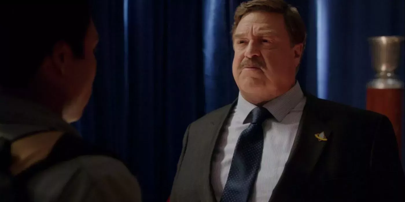 Fue una delicia cuando Goodman apareció como personaje recurrente durante la tercera temporada de Community en el papel del vicedecano Robert Laybourne. Goodman se balanceaba entre la intimidación y la hilaridad como el personaje, convirtiéndolo en un antagonista entretenido. Durante su breve estancia en Community, Laybourne atormentó cómicamente al decano Craig Pelton e intentó manipular a Troy para que se uniera a su programa de reparación de aire acondicionado.