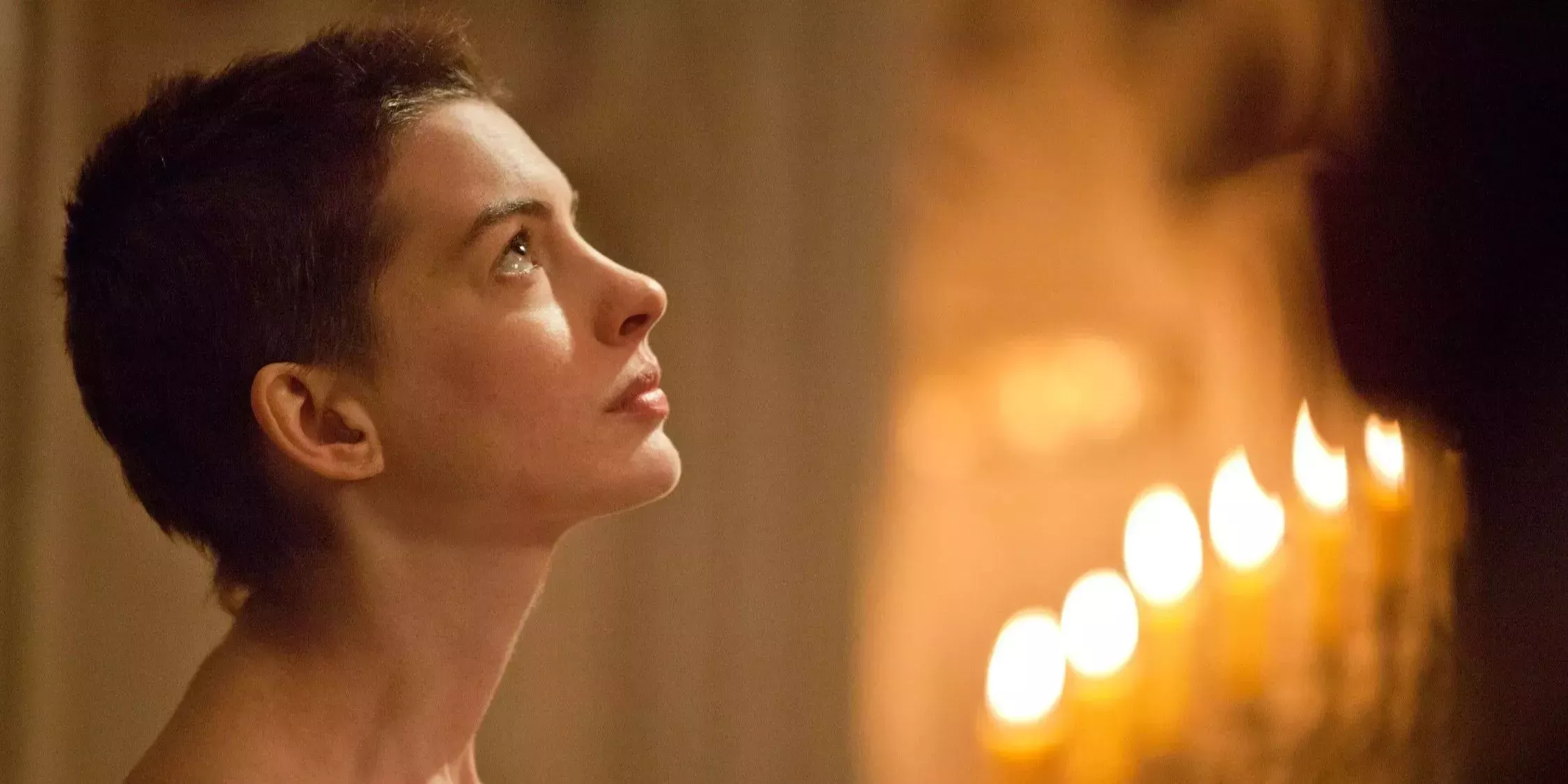 Fantine es uno de los personajes más trágicos de la trágica historia de Los Miserables. Su personaje es despedido de su trabajo en una fábrica, se ve obligado a vivir en la calle y vende su pelo y, finalmente, su cuerpo para sobrevivir. Tras ser elegida para el papel, Hathaway decidió que le cortarían el pelo en la pantalla.
