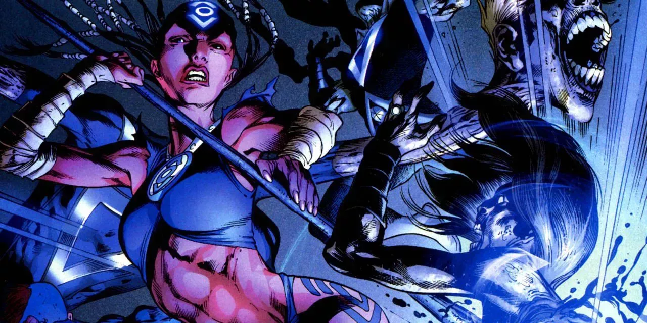 Big Barda, antigua miembro de las Furias femeninas de Apokolips, es otra candidata poco probable para ayudar a salvar la Tierra. Como Furia, sirvió a Darkseid, el epítome del mal, y utilizó su fuerza y durabilidad divinas para mantener a raya a sus esclavos y matar a cualquiera que se atreviera a enfrentarse a él. Sin embargo, cuando conoció a Mister Miracle, se enamoraron y él la convenció de que debía poner fin a su lealtad al malvado dios. Desde entonces, ha luchado por la Tierra al lado de Mister Miracle. Esto se puso de manifiesto en la Guerra de Darkseid, en la que luchó contra los secuaces del mal, incluidos sus antiguos aliados, con la Liga de la Justicia.