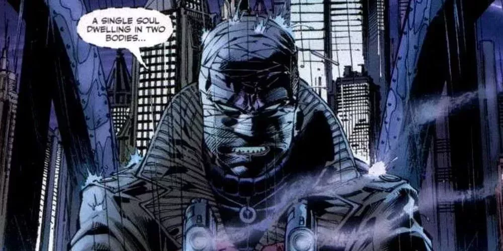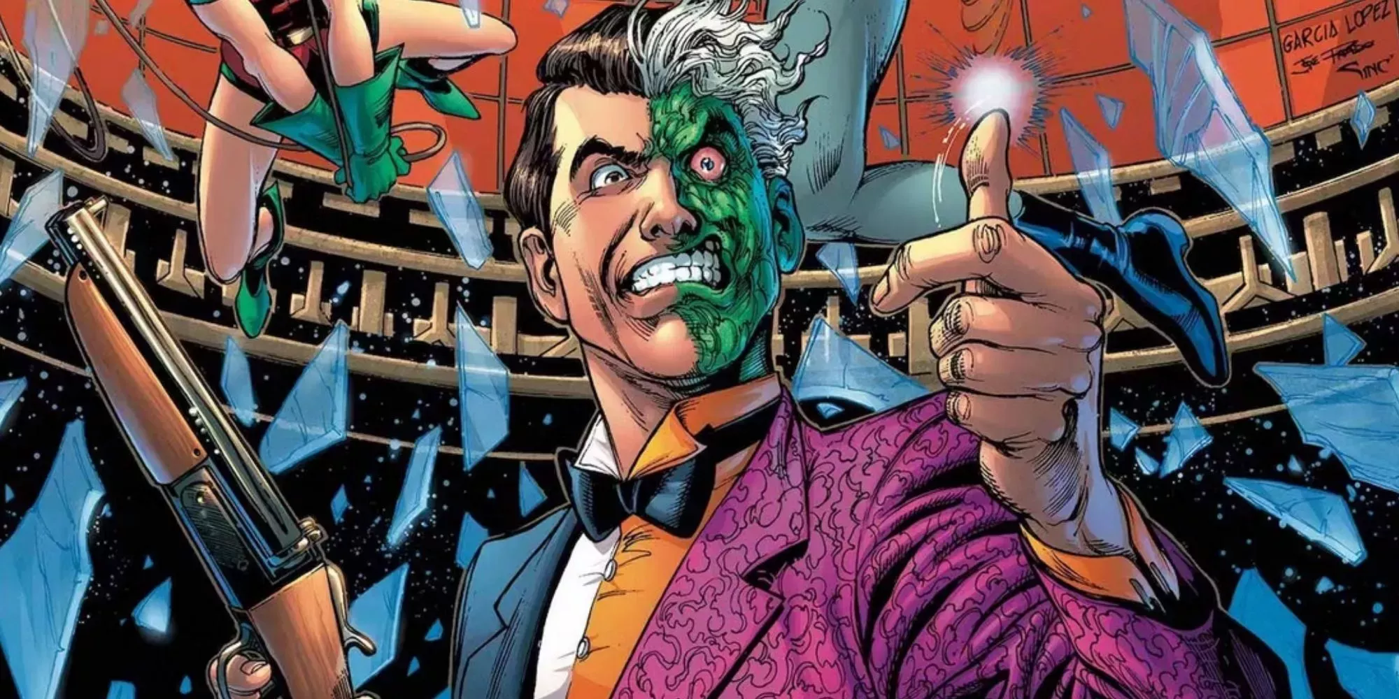 La mente de Harvey se dividió en dos en una forma de Trastorno de Identidad Disociativo, con un lado representando toda la rabia, odio y crueldad de Harvey. Harvey Dent se convirtió en el villano Dos Caras, que utilizó su conocimiento experto del sistema criminal para convertirse en un importante señor del crimen de Gotham City y enemigo de Batman.