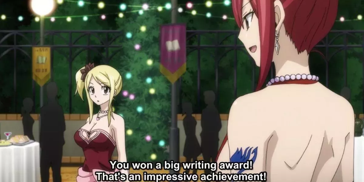 El arco del Imperio Álvarez deFairy Tailes un poco descuidado, sin duda; el último arco no es tan bueno como el penúltimo. Sin embargo, el último episodio es brillante y feliz. Los espectadores pueden ver lo que les ocurre a todos los personajes principales de Fairy Tail cuando termina en una cena especial para Lucy. Hay montones de ship teases para todos, desde Gray y Juvia hasta Erza y Jellal. Gajeel y Levy han conseguido no sólo empezar a salir, sino que Levy va a tener un hijo de Gajeel, para sorpresa de todos. Incluso la antecesora de Lucy decide quedarse en el presente y hacer lo suyo ahora que su trabajo ha terminado.