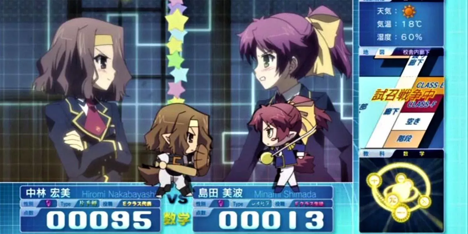 En Baka & Test: Summon the Beasts, existe una escuela secundaria llamada Academia Fumizuki. Es una escuela que implementa un sistema para dividir a sus estudiantes. En función de las puntuaciones obtenidas en los exámenes al final del primer año, los alumnos con mayor puntuación pasan a la clase A, hasta llegar a la clase F, la más baja. Dentro de estas clases, los alumnos con mejores notas reciben instalaciones de alta calidad, mientras que los más bajos reciben instalaciones de baja calidad.