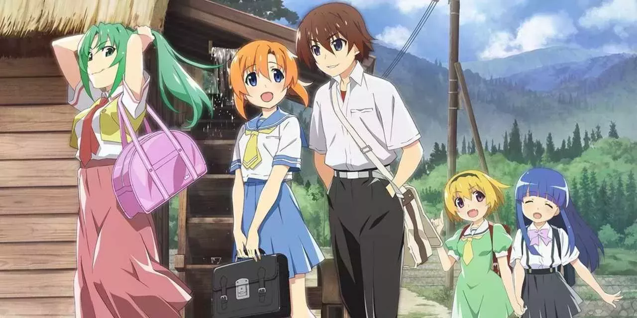 El original Higurashi es un elemento básico en el género del anime de terror. Comienza como un anime de corte vital, pero rápidamente se convierte en un terrorífico episodio. Un chico llamado Keiichi se muda a un pueblo y descubre que el pueblo tiene varios secretos oscuros. A medida que la paranoia se instala, los personajes comienzan a matarse entre sí. El final feliz de este anime es un poco precipitado. Es difícil creer que los personajes sean capaces de superar los acontecimientos tan fácilmente. Aun así, Keiichi consigue evitar que Rena lo mate y la ayuda a reencontrarse a sí misma.