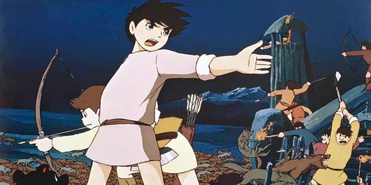 LaGran Aventura de Horus se parece sin duda a muchos otros animes de finales de los 60 y principios de los 70, con sus caras redondas y su paleta de colores suaves. Pero las semillas del estilo artístico del Studio Ghibli están presentes. La película es uno de los primeros proyectos de Hayao Miyazaki.