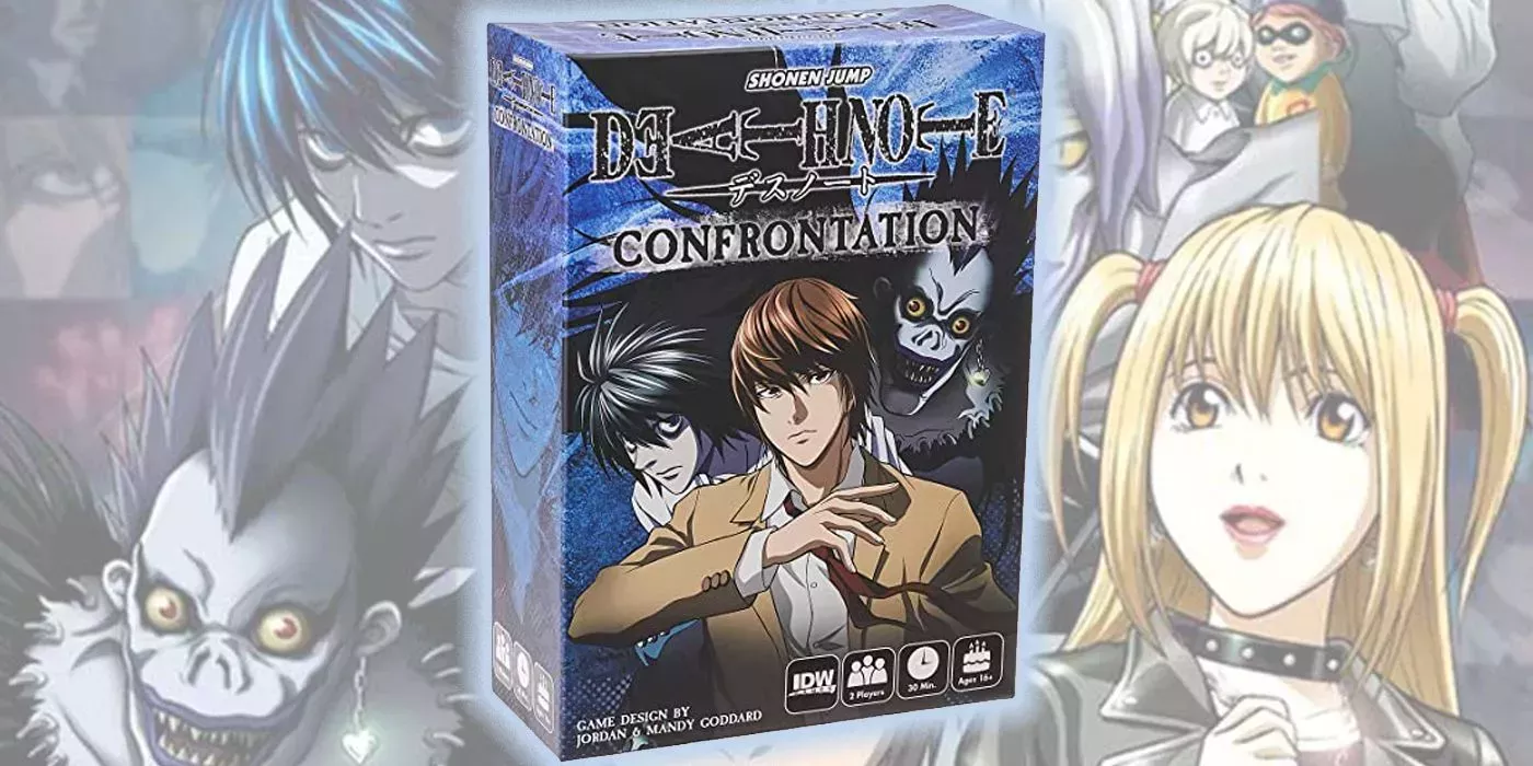 Death Note: Confrontation es un juego para dos jugadores que pone a los aficionados en medio de un misterio de asesinato con temática de Death Note. Una persona interpreta al detective, L, mientras que la otra interpreta al asesino, Kira. Y así comienzan los juegos del gato y el ratón.