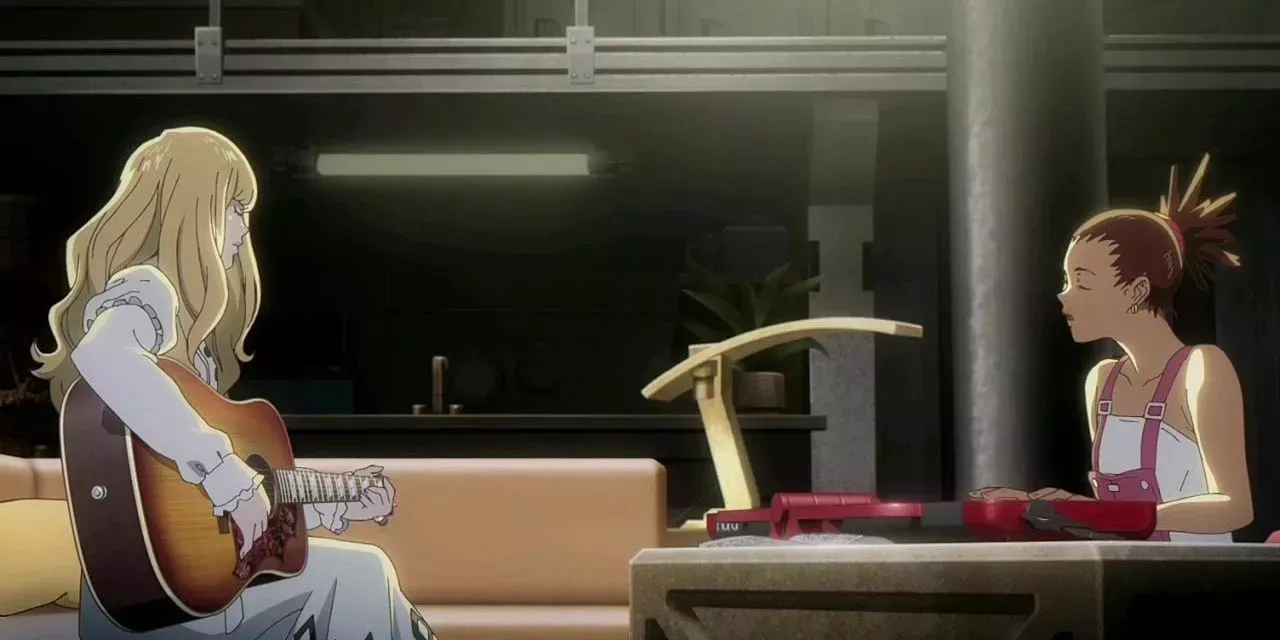 Carole & Tuesday se centra en los protagonistas, que intentan triunfar en la industria musical. Ver cómo se conocen y forman una banda desde cero es un recordatorio de que todo el mundo empieza en algún sitio, y cualquiera puede coger una guitarra o un teclado y escribir una canción.