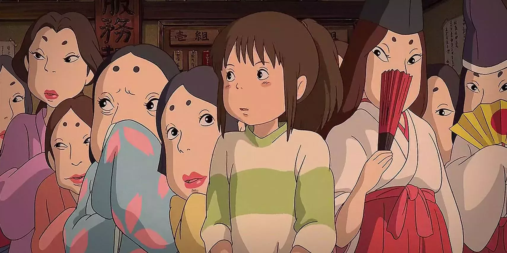 Laprotagonista Chihiro de la película de Studio Ghibli Spirited Away (2001 ) destaca por su naturaleza humana. Después de quedar atrapada en el mundo de los espíritus, es vulnerable de una forma que los espíritus no lo son. La arquitectura y los paisajes no son seguros para los humanos ni amigables. Chihiro corre constantemente el peligro de verse amenazada por la magia.