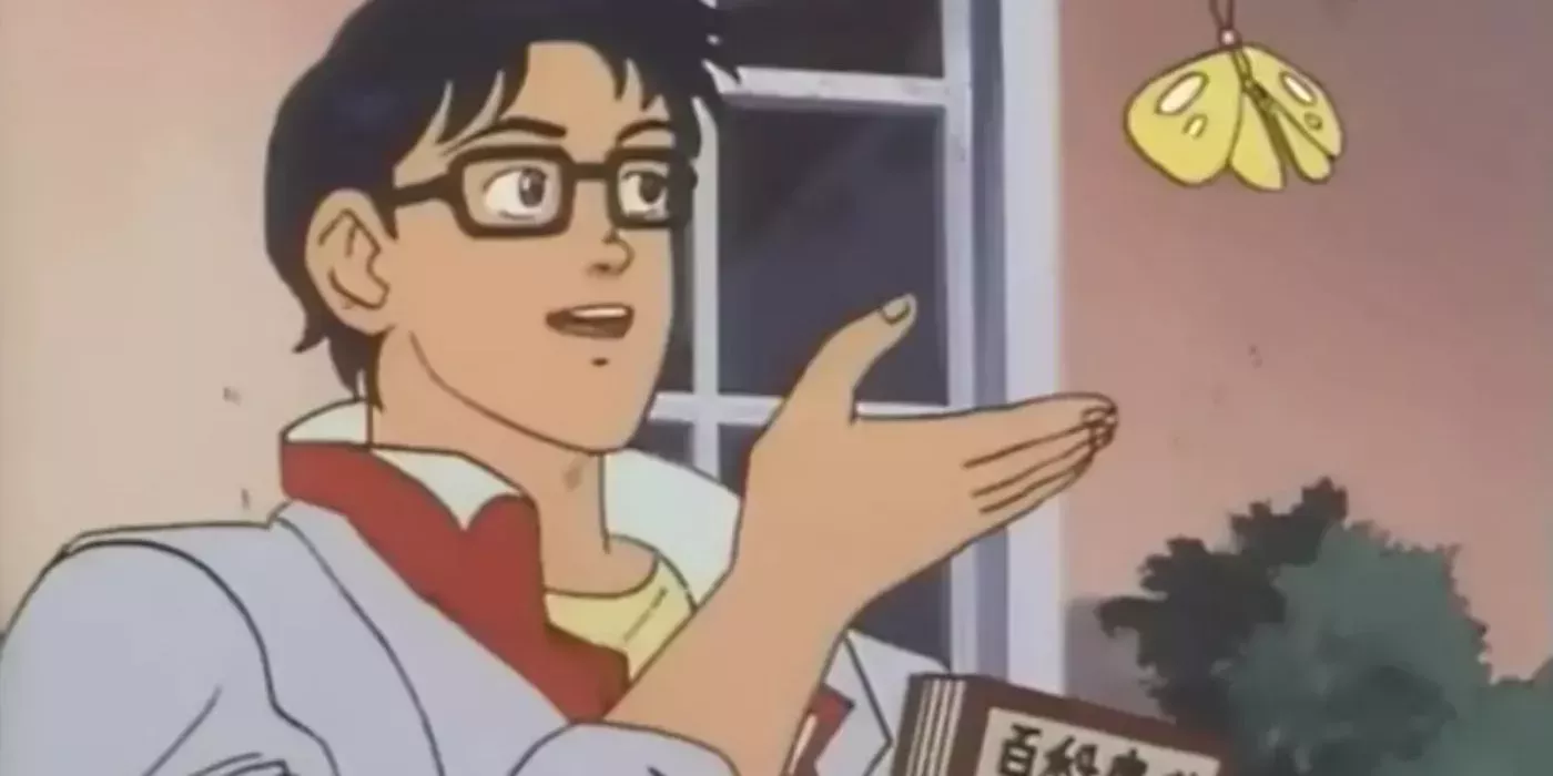 Uno de los formatos de memes más populares de todos los tiempos proviene de un oscuro anime de 1991 llamado The Brave Of Sun Fighbird. La captura de pantalla que rompió Internet muestra al protagonista, Yuutarou Katori, señalando una mariposa y preguntando si es una paloma.