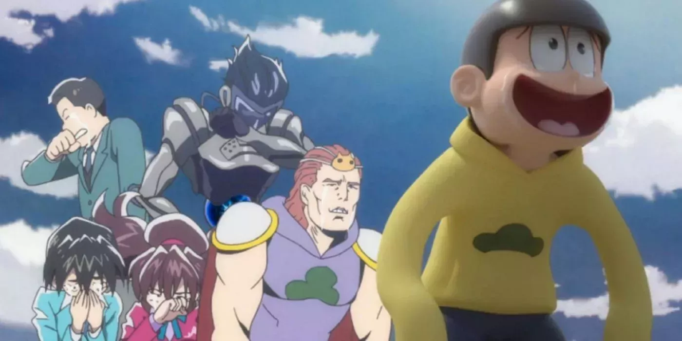 Los cambios artísticos más radicales suelen producirse en los estrenos de temporada, que es donde Osomatsu-San tiende a volverse increíblemente meta. Por ejemplo, la segunda temporada comenzó con los hermanos Matsuno tomándose un descanso para crecer un poco, así que, por supuesto, esto dio lugar a que cada hermano pareciera salido de un anime diferente cuando se reunieron después del salto temporal.