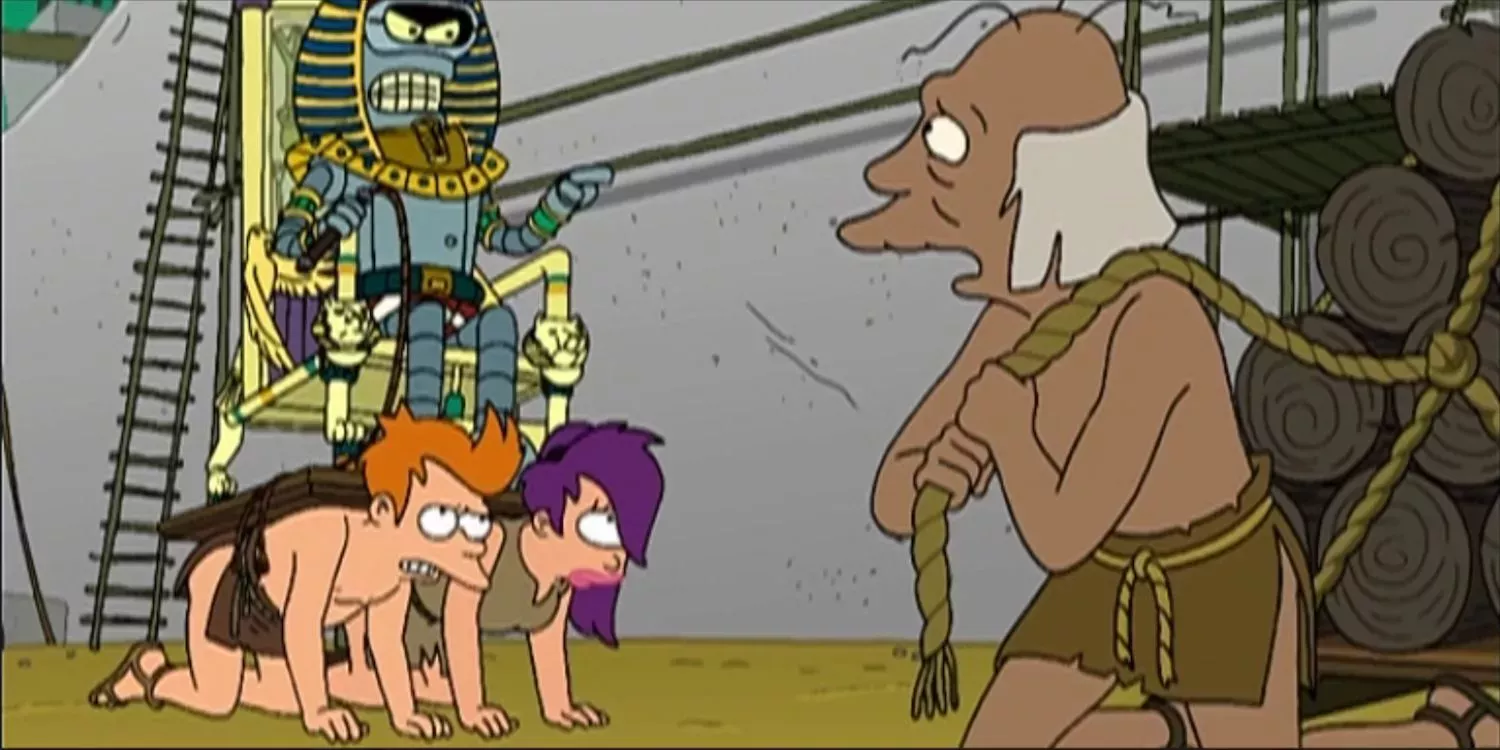 7 Bender se convierte en faraón y encarcela esclavos para que cumplan sus órdenesTemporada 3, Episodio 17, "A Pharaoh To Remember."