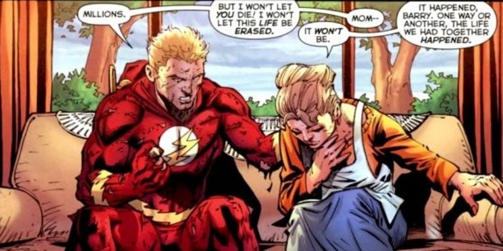 El Flashpoint comenzó en primer lugar por el deseo de Barry de volver a ver a su madre, convirtiéndose en el catalizador de todo lo ocurrido. Culminó con Barry despidiéndose con lágrimas en los ojos de su madre en la nueva línea de tiempo mientras hacía por arreglar las cosas.