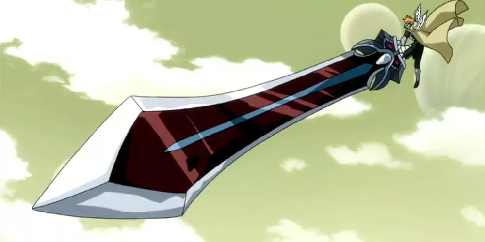 La Bustermarm de Fairy Tail es un arma única por su capacidad de transformación. Al principio, puede parecer sólo un mango delgado con un diseño de gato de gran tamaño como guardia de la espada. El arma ya es de gran tamaño antes de que la hoja salga por arte de magia, pero cuando está en su forma completa, la espada se convierte en unas cuatro veces la altura del portador. Aunque el arma es un complemento perfecto para Panther Lily, el Bustermarm sigue siendo un arma ridícula. El mero hecho de intentar equilibrar la empuñadura traería problemas a cualquier espadachín.