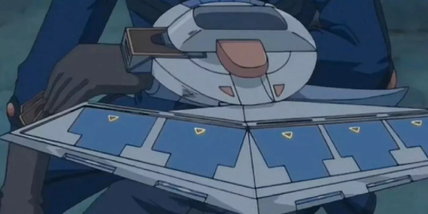 4 Yu-Gi-Oh! Duel Monsters - El disco de duelo encapsuló la tontería del animeYu-Gi-Oh! Duel Monsters es legendariamente tonto, desde la forma en que sus personajes se toman un juego de cartas para niños demasiado en serio hasta la loca cantidad de reglas que se rompen en cada duelo. En ninguna parte se resume mejor esto en el Disco de Duelo, un periférico de juego de cartas exagerado que permite a los duelistas jugar partidas de cartas con un sistema de realidad virtual en cualquier momento y lugar.