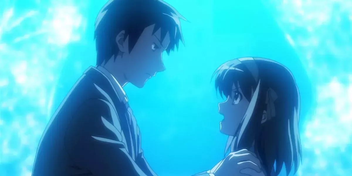 9 La melancolía de Haruhi Suzumiya: El beso de Kyon y Haruhi cambia su relación y posiblemente su mundo tal y como lo conocen