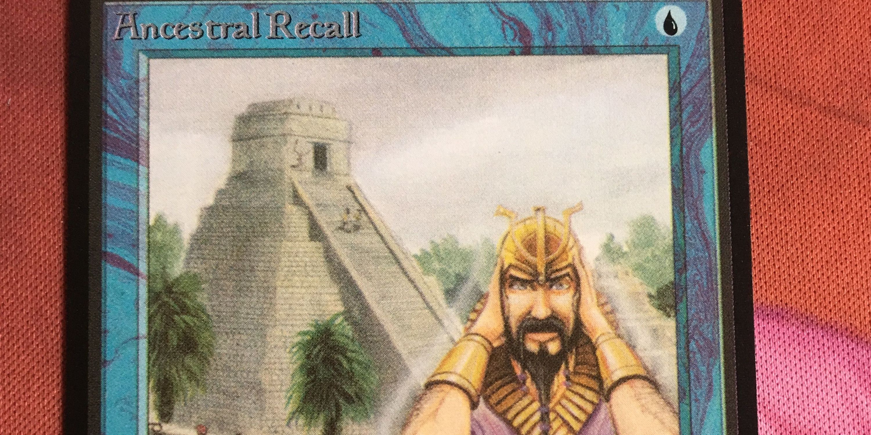 RecuperaciĂłn ancestral es una de esas cartas que mataron el equilibrio de poder. En los viejos tiempos, cada color tenĂa una carta que costaba un maná y hacĂa algo que el color hacĂa mejor. El azul siempre ha sido bueno en la manipulaciĂłn de manos, asĂ que Ancestral Recall permitĂa a un jugador robar tres cartas por una azul. Es una de las cartas Alfa más poderosas y ha estado prohibida durante mucho tiempo.