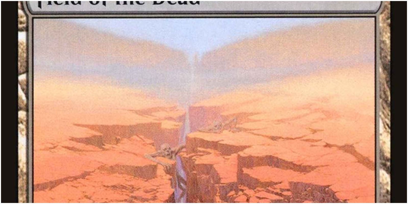 Campo de los muertos es una tierra que produce un incoloro y tiene una habilidad extra que permite al jugador poner en juego una ficha de Zombie negro 2/2 cada vez que juega una tierra, pero sĂłlo si tiene siete tierras con nombres diferentes en juego. Esta habilidad es tan especĂfica que hace que la carta sea inĂştil, sinceramente.