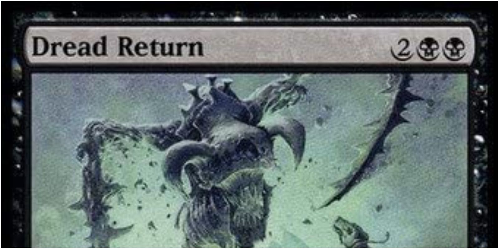 Retorno del espanto es un hechizo negro que permite a un jugador devolver una criatura de su cementerio por dos manás negros y dos incoloros. Tiene un coste de Flashback de tres criaturas para jugarla desde el cementerio. Sinceramente, la carta es un poco cara, para empezar, y su Flashback es definitivamente demasiado.