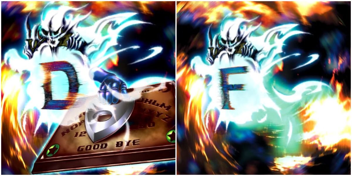 Muchas versiones internacionales de las cartas de Yu-Gi-Oh! rehúyen cualquier referencia a la religión o a lo oculto, y el Tablero del Destino no es una excepción. Se trata de una carta de trampa continua que permitirá a los jugadores ganar el duelo si consiguen deletrear "MUERTE" utilizando el resto de las cartas de Mensaje Espiritual. En el arte de la carta japonesa aparece un tablero de ouija, pero se eliminó del arte de la carta para la versión internacional. Además, la palabra "MUERTE" se cambió por "FINAL", por lo que cada carta de Mensaje Espiritual se modificó en consecuencia.