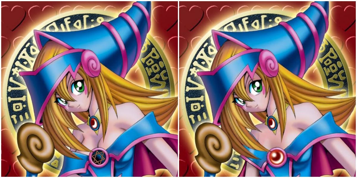 Los cambios en las cartas de la Chica Maga Oscura han sido un punto de discordia durante mucho tiempo entre los fans de Yu-Gi-Oh!, ya que ha formado parte del juego desde el principio. No solo se editó su escote para que fuera menos sugerente, sino que el pentagrama de su pecho se eliminó por completo y se sustituyó por una piedra roja brillante. Esto convierte a la Maga Oscura en una carta controvertida por dos razones: primero, fue censurada por sus pechos demasiado sugerentes desde el punto de vista sexual, y luego, el pentagrama fue censurado por sus connotaciones religiosas.