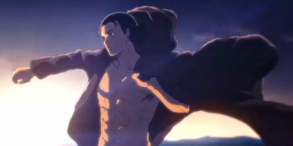 La evolución de Eren hacia un chico malo es lenta, pero realmente golpea a los espectadores en la animación de apertura de la cuarta temporada. Con un nuevo y desordenado moño, una gabardina, un cuerpo vengador y unos ojos sin vida, el espíritu fogoso y chispeante de la juventud de Eren es sustituido por un alma apagada, silenciosamente hervida y fermentada por el trauma.