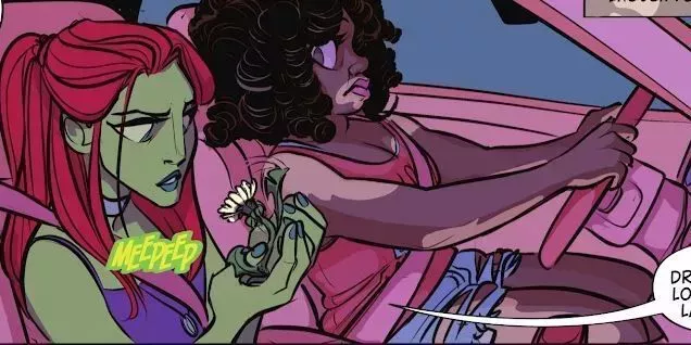 La comida. ¡Bang! Kill. Tour permitió a los lectores echar un vistazo a algunas de las luchas por las que pasan Harley e Ivy al comenzar su relación. Ivy descarga parte de su ira y culpa en Harley, lo que hace que ésta se cuestione si su relación es diferente a la de ella y el Joker. Ivy se esfuerza por abrirse a Harley y con frecuencia la distrae de sus problemas con el sexo. Si la serie quiere diferenciarse de otras comedias, adaptar estos temas tan humanos es una gran manera de hacerlo.