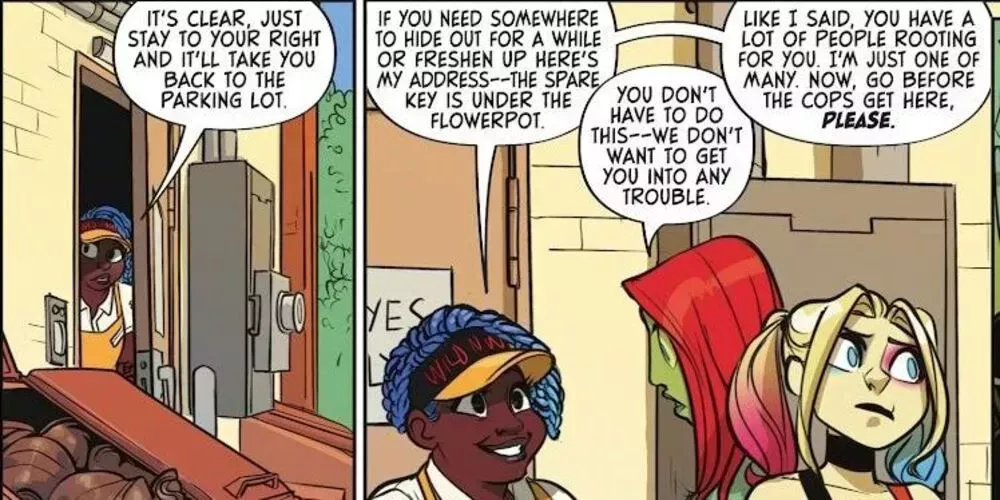 Desde los empleados de un área de descanso hasta las bailarinas de un club de striptease, Harley e Ivy reciben muchas muestras de amabilidad y apoyo de la gente corriente. Mantener este hilo en la serie es una gran manera de preservar el sentido de la moral gris que tan bien hace. Los héroes no siempre tienen razón y los villanos no siempre están equivocados, y tiene sentido que la gente elija por sí misma a quién apoya en un conflicto.