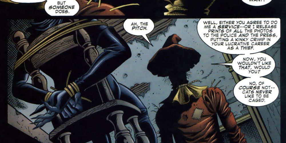 El profesor Hugo Strange es técnicamente el cerebro detrás de los eventos de Batman: Terror , pero muy rápidamente se convierte en una historia en la que el Espantapájaros es el que tiene el control. Estas dos mentes retorcidas sistemáticamente rompen todos los aspectos de la vida de Batman hasta que no tiene más remedio que caer en su trampa. El Espantapájaros usurpa a Strange y se eleva a un inusual papel de poder. Batman es la víctima aquí y se convierte en una historia que trata más sobre las ambiciones de Espantapájaros y su necesidad de ser tomado en serio. La presencia de Batman se diluye aún más con la forma en que se apoya en Gatúbela para que lo ayude aquí también.