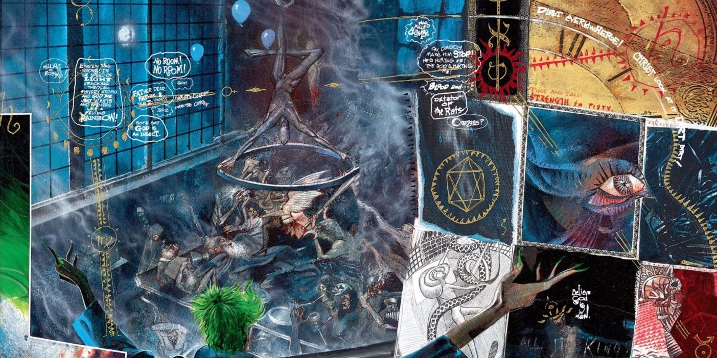 Asilo Arkham: Una casa seria en la Tierra seria es un magnífico libro de Grant Morrison y Dave McKean que destaca por su estilo de arte surrealista que pasa de los sueños fantásticos a las cartas de los asesinos en serie. La historia es bastante simple e involucra a Batman haciendo una visita no deseada a Arkham para obtener información. El Guasón llama la atención aquí, pero el libro es realmente una celebración del Asilo Arkham en su conjunto. Dos Caras, Cara de Arcilla, Sombrerero Loco y tantos otros villanos hacen su aparición. Se trata de la tensión que se crea a partir de estas energías colectivas que se mantienen en esta institución.