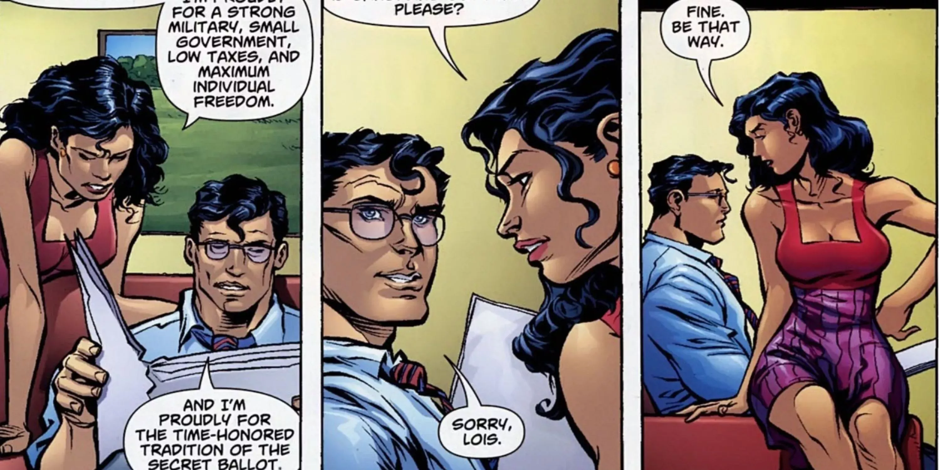 DC's Decisions se creó durante el ciclo electoral de 2008 como una forma de arrojar luz sobre las creencias políticas de los distintos héroes del DCU. La serie tenía un tono algo dispar, con algunas partes de la historia que parecían un episodio de Veep, para luego pasar a una trama más seria.