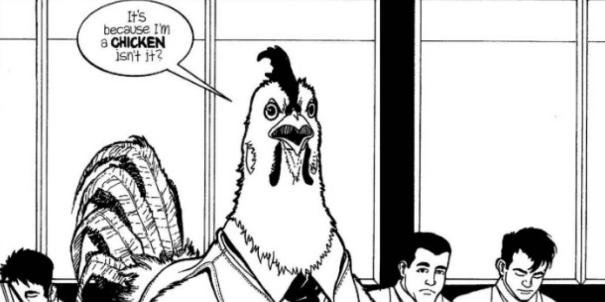 En el mundo de los cómics, hay todo tipo de héroes, incluso gallinas. En esta historia, a los pollos se les concede de repente la inteligencia humana, completa con la capacidad de hablar. Uno de estos pollos, Jake Gallo, de la segunda generación de pollos inteligentes, aprende sobre la lucha de los pollos por la igualdad de derechos.