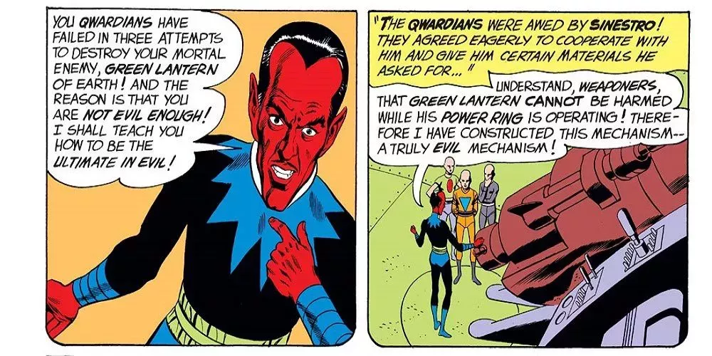 Poco después de su debut, Sinestro regresa en Green Lantern Vol.2 #9, más decidido que nunca a vengarse de los Guardianes que lo desterraron del universo. Este número marca la primera aparición de un anillo de poder amarillo. Sin embargo, el anillo que utiliza Sinestro en este número es muy diferente al que la mayoría de los fans conocen.