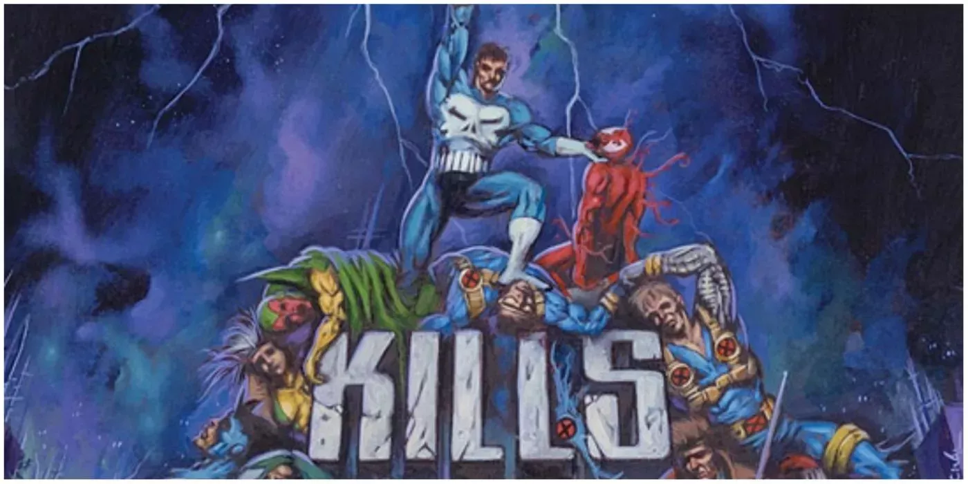 Punisher Kills The Marvel Universe de 1995, de Garth Ennis y Doug Braithwaite, fue la pieza perfecta de fanservice para hacer que Punisher fuera relevante sin una larga carrera en solitario que desarrollara el personaje. El cómic muestra a Punisher matando a numerosos héroes de Marvel mientras ignora completamente cualquier escala de poder para dar a Punisher la victoria.