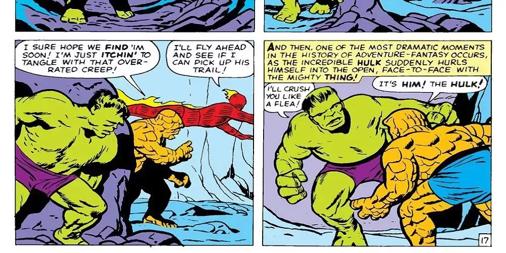 Si un lector busca descubrir las raíces de la Edad de Plata de los Cómics de Superhéroes de una rivalidad entre personajes que continúa hasta nuestros días, no necesita buscar más allá de Los Cuatro Fantásticos #12. De hecho, el esfuerzo recompensará al lector con una aventura en la que los Cuatro Fantásticos al completo cazan y luego luchan contra Hulk.
