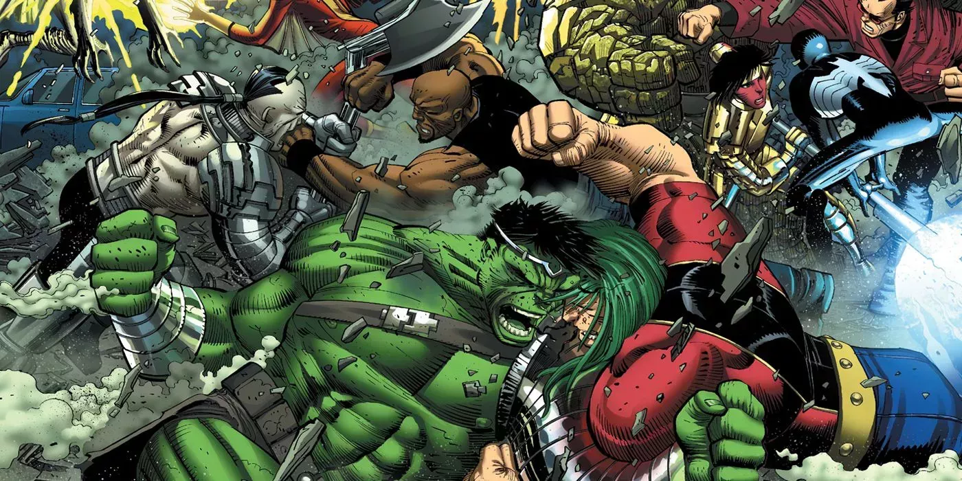 Cuando Hulk regresó de su exilio en el Planeta Sakaar, estaba tan furioso como siempre. Esta vez, el personaje de Marvel Comics conocido por su ira no luchó contra uno o varios héroes, sino contra casi todo el panteón de héroes de Marvel a lo largo de los cinco números de la miniserie.
