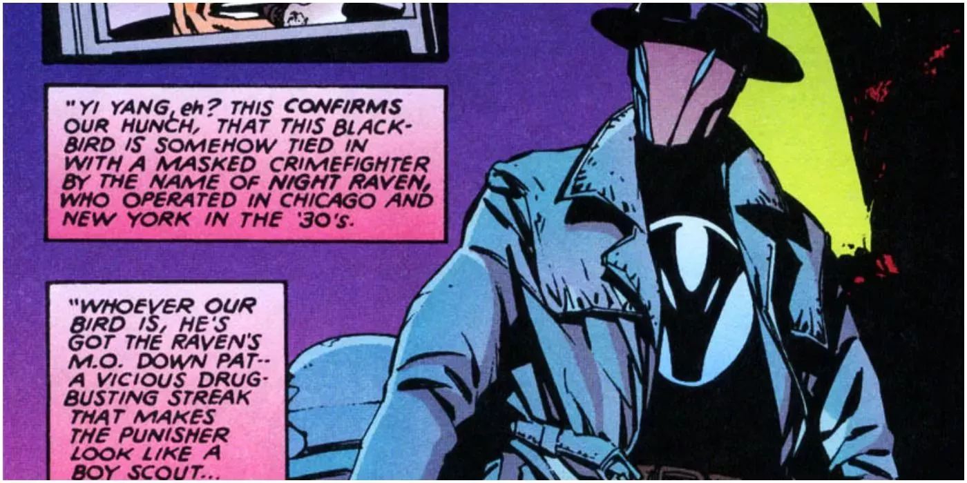 Publicado bajo el sello británico de Marvel, Marvel UK, Night Raven comenzó su vida en las páginas de Hulk Comic. Night Raven es un justiciero pulposo con una afición por no morir, ya que lleva vivo desde principios del siglo XX.