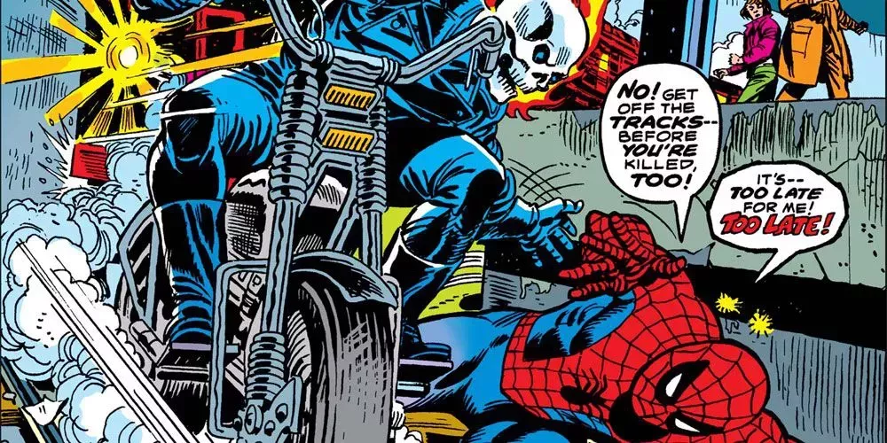Al principio de su carrera, Johnny Blaze controlaba al Motorista Fantasma. Por eso es tan heroico en Marvel Team-Up #15 de Len Wein, Ross Andru, Don Perlin y Glynis Wein. Ya no parece una historia del Motorista Fantasma, pero el cómic sigue siendo bueno, y ese panel del Orbe sin su casco merece la pena leer la historia.