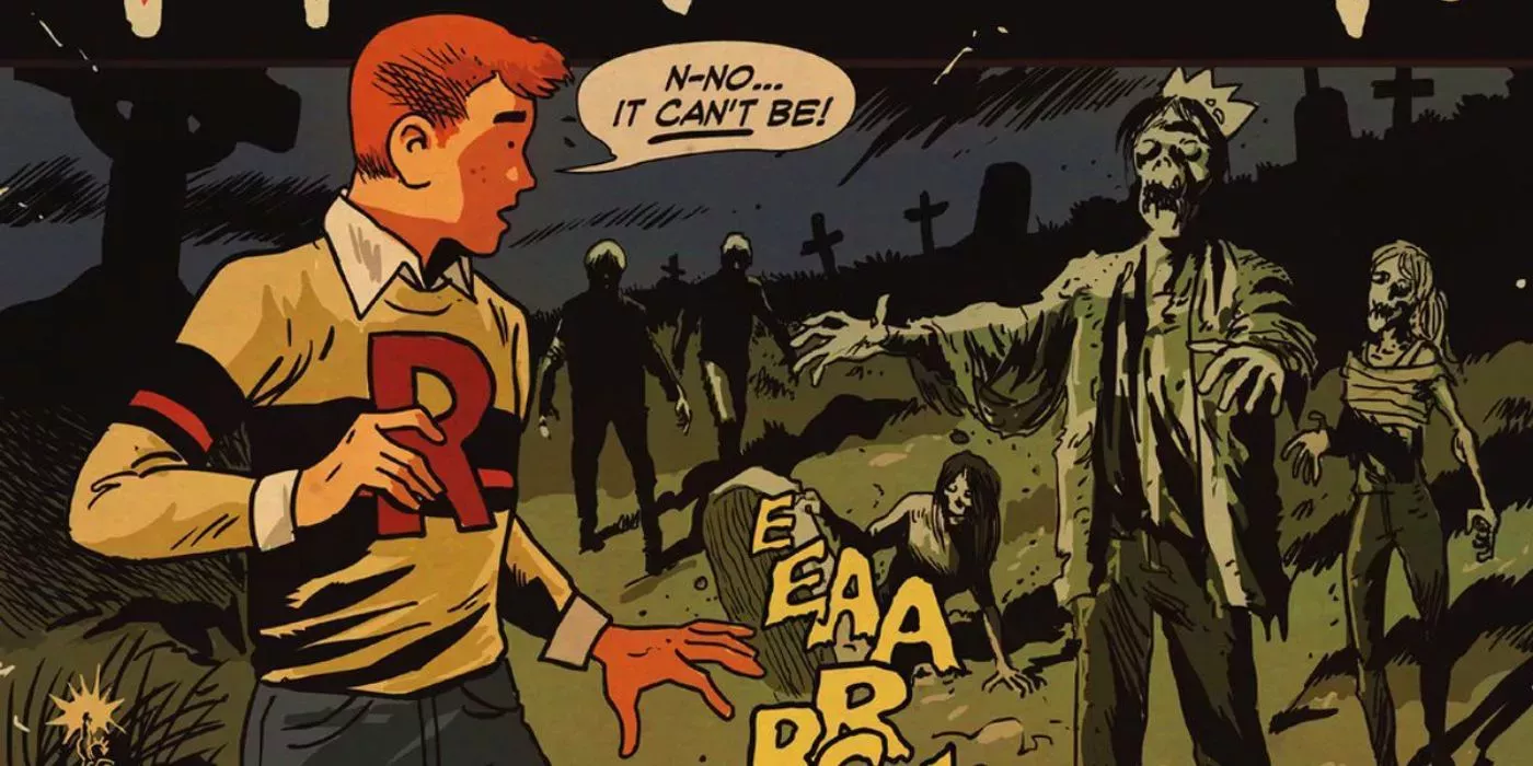 En uno de los movimientos más extraños y satisfactorios de los últimos tiempos, Afterlife with Archie , de Roberto Aguirre-Sacasa y Francesco Francavilla para Archie Comics, enfrenta a los sanos residentes de Riverdale en una historia de supervivencia zombi al estilo de Walking Dead. Aunque al principio muchos lectores se mostraron reacios a aceptar el cambio, tras el lanzamiento del título en 2013, la mayoría se dejó convencer por la inteligente escritura y el sublime arte que consigue mezclar el terror al estilo de EC Comics con los tropos más tradicionales que los fans identifican con Archie y sus amigos.
