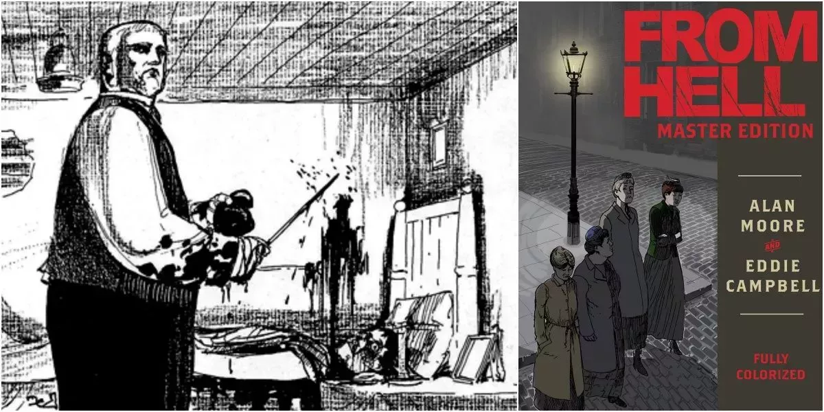 From Hell es una grotesca serie gótica de asesinatos del genio del cómic Alan Moore. Cuenta la infame historia del asesino en serie victoriano Jack el Destripador. La serie está brillantemente escrita por Moore y las ilustraciones de Eddie Campbell son adecuadamente oscuras y crudas.