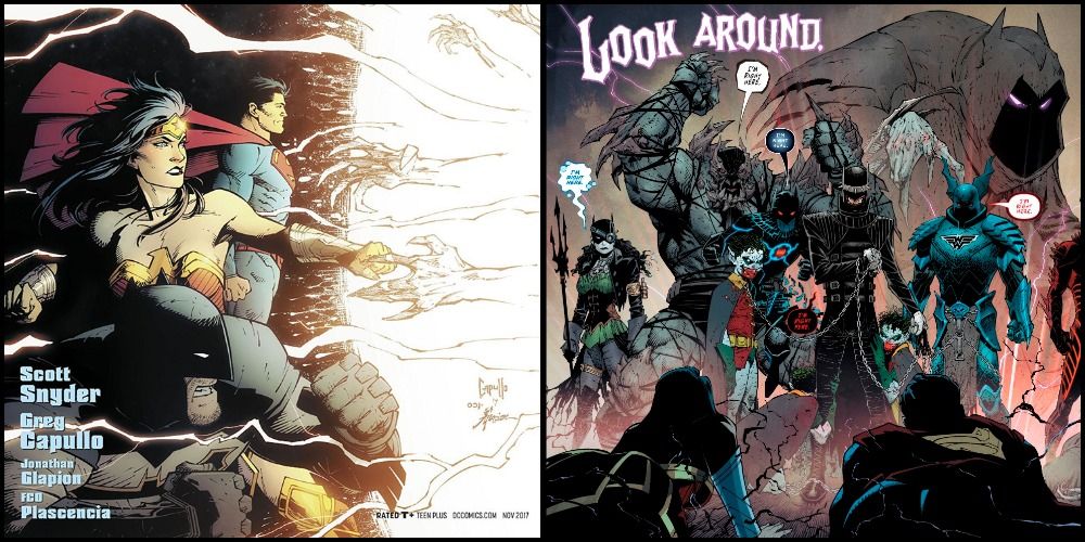 Este cómic presenta las primeras apariciones en cameo de los Batman del Multiverso Oscuro con Barbatos como misteriosas figuras en la sombra, lo que sienta las bases y el fondo de las Noches Oscuras: Arco argumental de metal .
