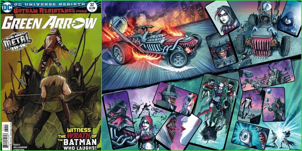 Este número concluye el arco de la historia de "Gotham Resistance" en cuatro partes (parte 2: Nightwing #29 y parte 3: Suicide Squad #26, 2017) que marca la segunda aparición completa del Batman Who Laughs y la primera aparición de su Batimóvil.