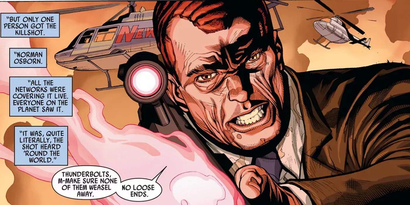 Aunque Norman Osborn comenzó su carrera como archienemigo de Spiderman, el Duende Verde, ya había pasado un tiempo como villano "reformado" liderando los Thunderbolts para el gobierno. Esto le permitió situarse en una buena posición para dar el disparo ganador que acabó con la Invasión Secreta de los Skrulls, convirtiéndolo en un héroe nacional.