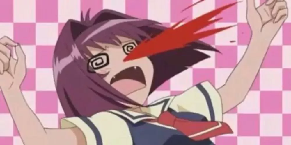 A pesar de ello, las hemorragias nasales en el anime se han convertido en un cliché exagerado y carecen de credibilidad. Aunque este tropo ha sido refrescantemente subvertido en la comedia romántica de anime Karin, se puede ver en su uso más práctico en series de anime de renombre como One Piece y Naruto.
