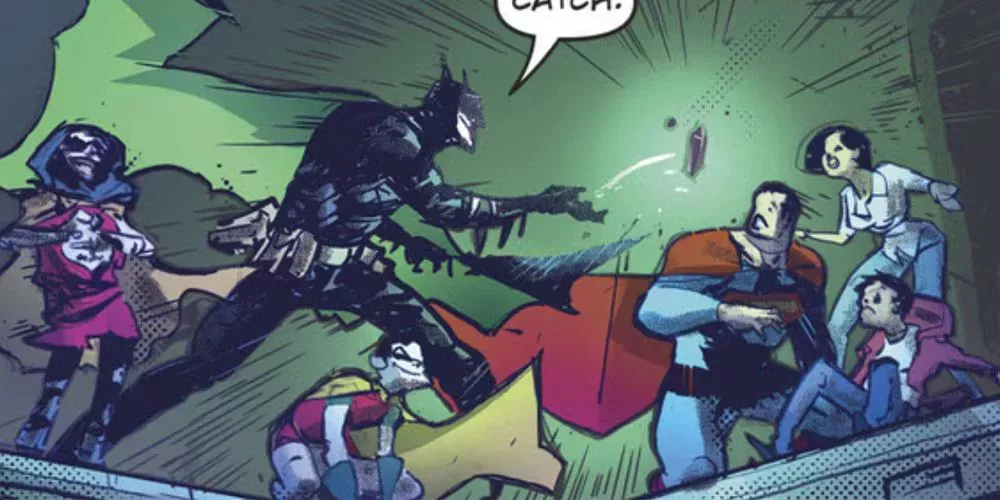 El Batman que ríe es posiblemente el villano más escalofriante que ha salido de DC Comics en décadas y establece por qué en Dark Nights: The Batman Who Laughs #1. Tras acorralar al Hombre de Acero, a su esposa Lois y a su hijo Jonathan, el híbrido simbólico de Batman y Joker revela su arma secreta: una pequeña hebra de kriptonita negra.