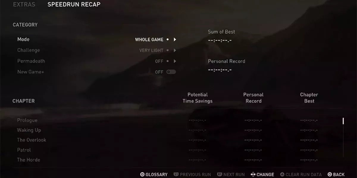 Los jugadores también pueden consultar su historial de Speedrun en el menú Speedrun Recap, que les permite ver su mejor marca personal en todo el juego, en las secciones de Ellie o en las secciones de Abby.